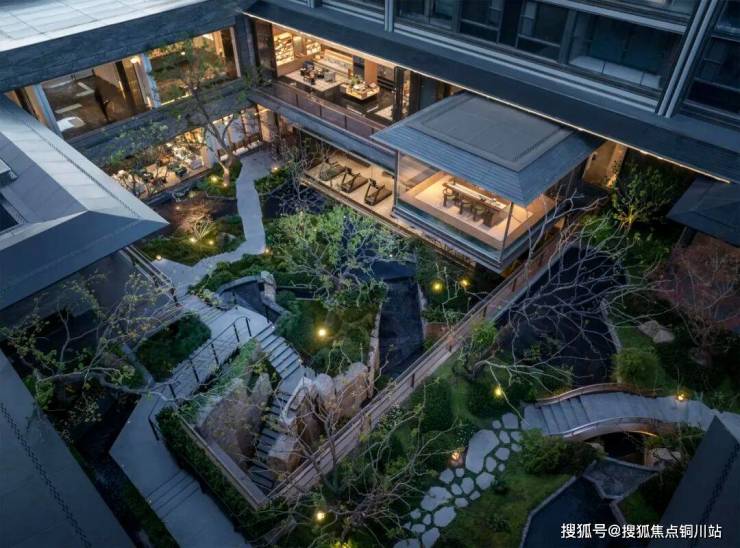 景观方面,绿城“庐系”的核心特征就是园林含量。「绿城逸庐」的园林景观以豫园为灵感,设计巧妙汲取苏州园林的造园精髓。项目自南向北刻画出一条蜿蜒曲折的中轴景观带,遍布下沉庭院、绿植、叠瀑、溪水和小桥。