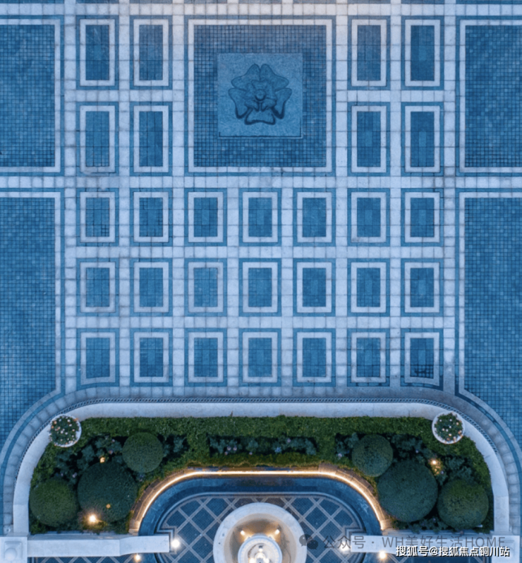 苏州玫瑰园在细节上极致考究:设计团队遴选全球数百种珍贵奢石,广泛运用于建筑立面、园林景观与公共空间。其纯铜门把手由锻打铜板衬底,宝格绿奢石镶环,并采用玫瑰纹微雕;园区主入口景墙上全手工锻造的金属喷嘴,造型来源于剑桥大学门楼外部雕刻的都铎玫瑰徽章。