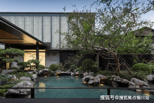 项目的园林不止于观赏,更是一场生命与科技共融的成长。设计师以现代手法转译苏州园林“四进归家”的礼序美学,打造出“紫气东来”、“山水迎客”等意境深远的主题庭院。尤为难得的是,园林中全冠移植了数十年树龄的丛生香樟、银杏乃至象征“紫气东来”的百年丛生紫薇,这些“植物活古董”让社区在交付之初便拥有了历经时光沉淀的苍翠气场。而这背后,是项目那套 “绿金科技”系统在默默护航,通过智慧化环境管理,为植物的健康生长提供了理想微气候,确保了园林生命力的历久弥新。