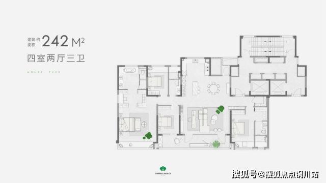 在苏州,200㎡以上的核心区大平层本就是稀缺资源。而狮山金茂府的建面约242㎡户型,则将这种稀缺性与产品力结合到了极致,堪称收官阶段的“压轴珍品”。