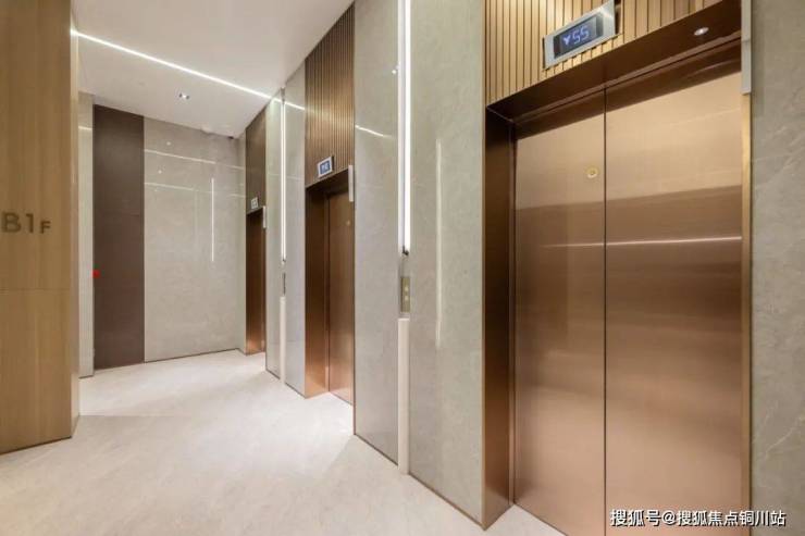 即使地下电梯厅也全装修设计,地面、墙面,简约的金属饰面,极具酒店式的高级感。