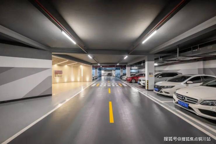 项目为地下车库打造了最高约2.8米的净高行车道,相较于常规车道约2.4米净高,实现空间向上生长约40厘米。且通过专业手段,实现了地库的秩序感。