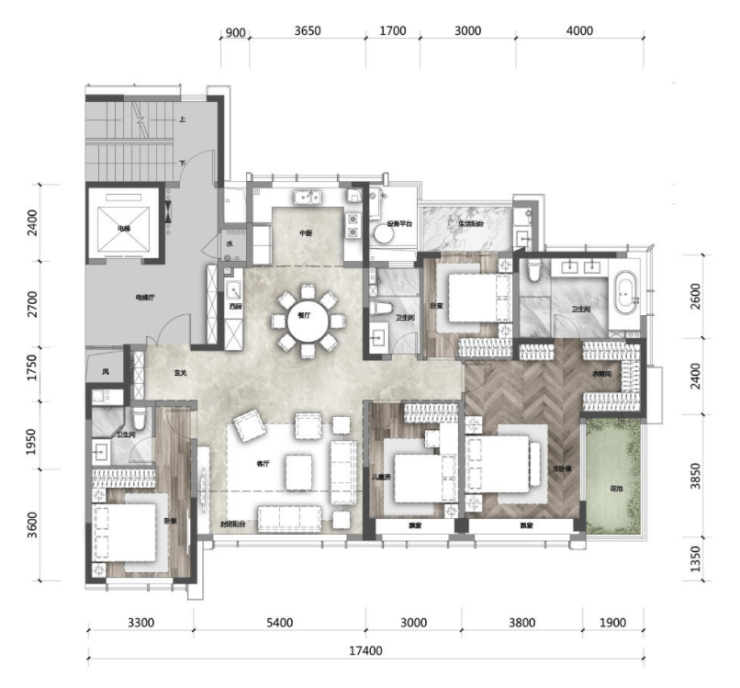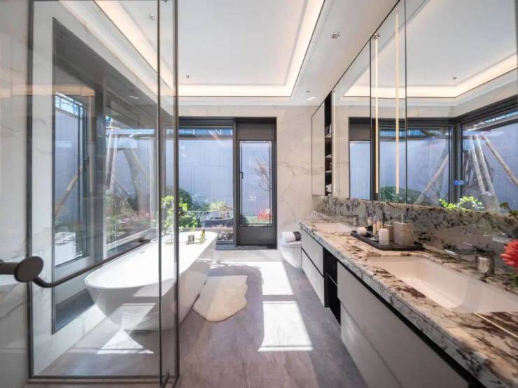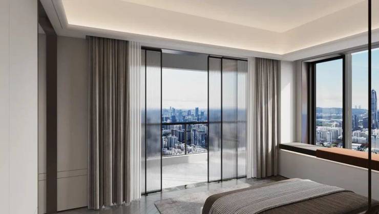 约42㎡朗阔尺度主卧,沿袭酒店式休憩体验,打造“小家化”自在空间,妥帖安放主人的精神需求。豪华主卫搭配L型转角窗,270°寰幕观景。