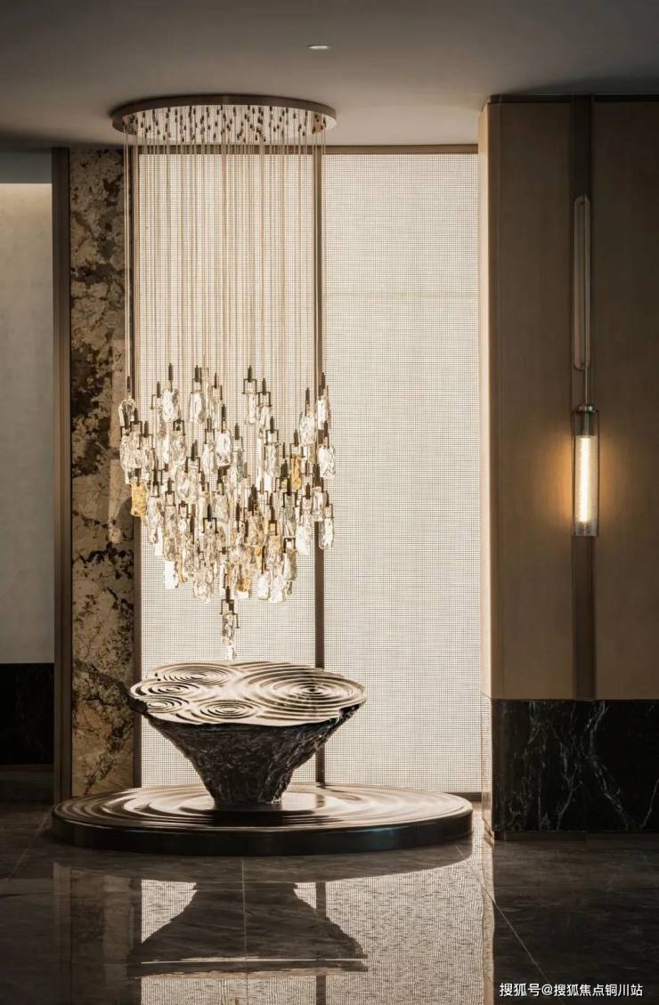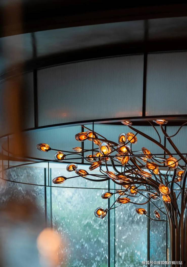 江城”武汉,是一座依水而生,因水而兴的城市,以水纹为体的艺术装置,让文化以更深层次的手法谱写,与硬装基底融为一体。