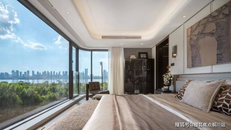 更重要的是,在主卧套房内形成了270度看江的全景舱,仿佛住在江面之上,每日看着奔流的长江,日出而起,日落而息。