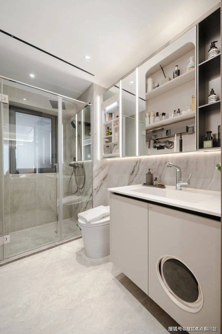 又如主卧卫生间采用了“超长镜柜”,让女主人日常的护肤美妆更得心应手;卫浴花洒也升级了“钢琴键开关”,满满的科技感与智能化。