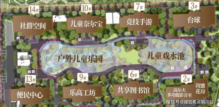 从东大门进来,到诗意山水园林模块,再到下沉式会所,以及西大门的入园水景,北侧童玩区的嬉水池……
