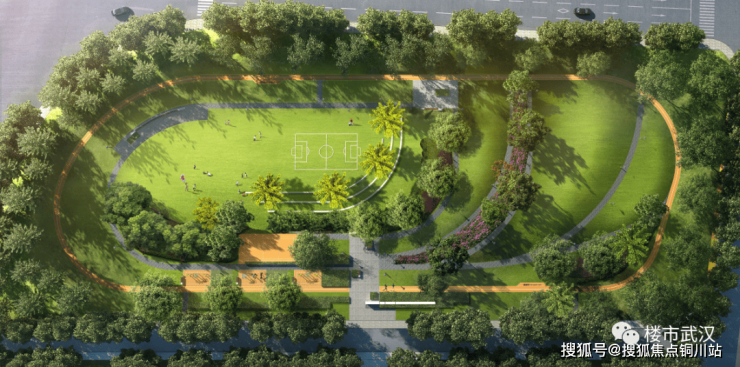 在项目北面红线内,充分利用规划条件,还特别设计了一个业主私享的约1.38万方活力运动公园。公园场地内利用大草坪生态手法,设置有约400米的健康环形跑道、乒乓球桌、羽毛球场、小型足球场、健身设备等。