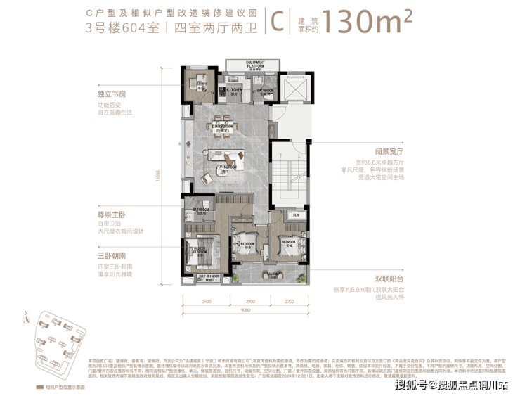 ▲中国铁建·未来视界建面约130㎡户型图-仅供参考