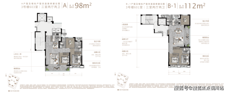 而建面约98㎡与112㎡的户型,同样也可圈可点。