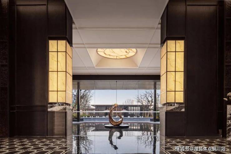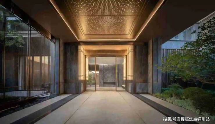 门庭用仿石砖、金属、星光顶、金属帘、云石片等材料打造,金属的精致、仿石砖的厚重、星光顶的梦幻和入口精致水景相得益彰。匠心雕琢代表对品质的不懈追求,对细节的坚持和尊重,工艺的传承与发扬将成为跨时代的艺术。