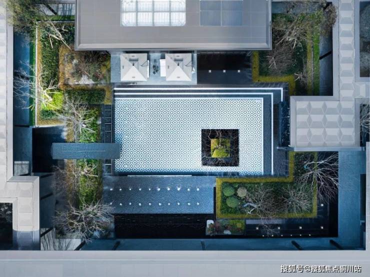 造园贯彻于整个中心庭院的规划中,大大小小十多个庭院矩阵围合,天然的形成了曲折通幽的路径,为住户带来移步异景的闲适体验。