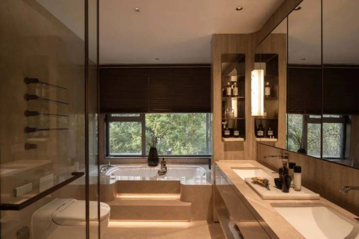卫浴空间采用 [知名卫浴品牌] 高品质洁具,智能马桶具备多种功能,包括温水冲洗、暖风烘干、座圈加热等,为业主提供舒适、便捷使用体验;淋浴花洒出水均匀流畅,水压稳定,搭配大尺寸淋浴间,让业主享受舒适沐浴时光。浴室柜采用高品质材料制作,防水防潮,收纳功能强大,同时搭配精致镜子和灯光设计,提升卫浴空间整体美感和实用性。智能马桶多种功能可根据业主需求调节,为业主带来更加舒适和健康使用体验;淋浴花洒大出水面板和多种出水模式,能让业主享受到如瀑布般淋浴体验;浴室柜合理设计和高品质材料,不仅美观大方,还能保证长期使用稳定性和耐用性。