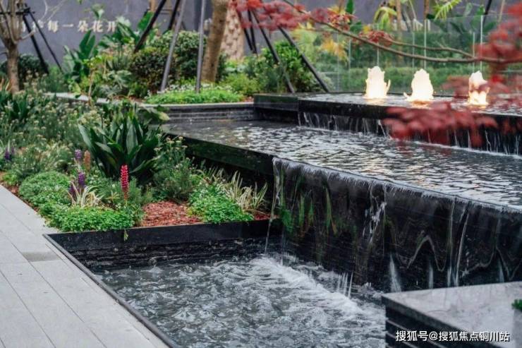 在玻璃围挡的外侧,那高低错落的景台,清脆悦耳的潺潺叠水,让这一份度假氛围感有了更为灵动的表达,未来这里也将会是业主南向回家动线的第一眼风景,以“流水之韵伴归家”的美好,打开诗意生活的第一页。