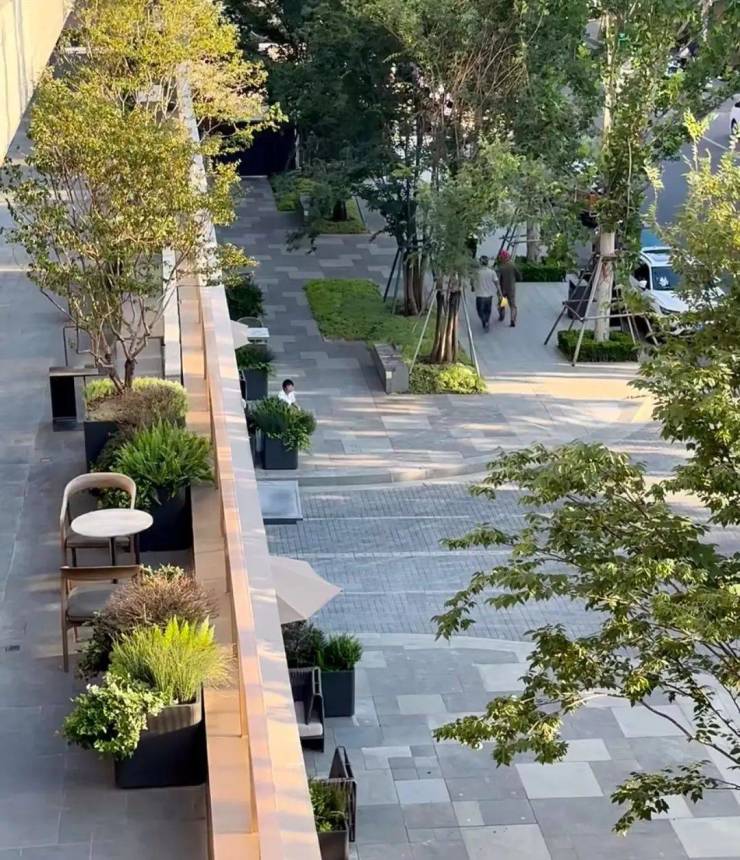 这是从小区俯视楼盘沿街人行道。