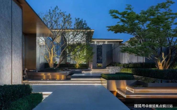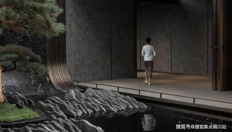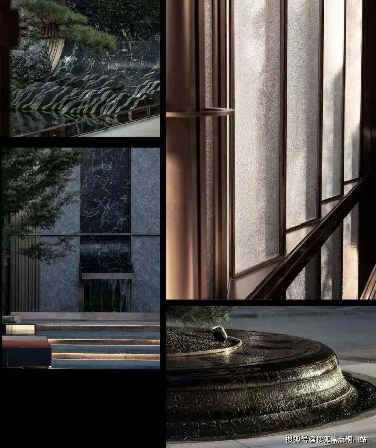 在珑誉的景观空间中强调的高定、精奢、在地性作为设计的导则设计师从入口开始便强调了空间体验的营造,门厅处高低差的台阶与潺潺的流水声暗示着空间的转换,循序渐进,既可于门厅清晰地观赏侧面的巨书水庭。