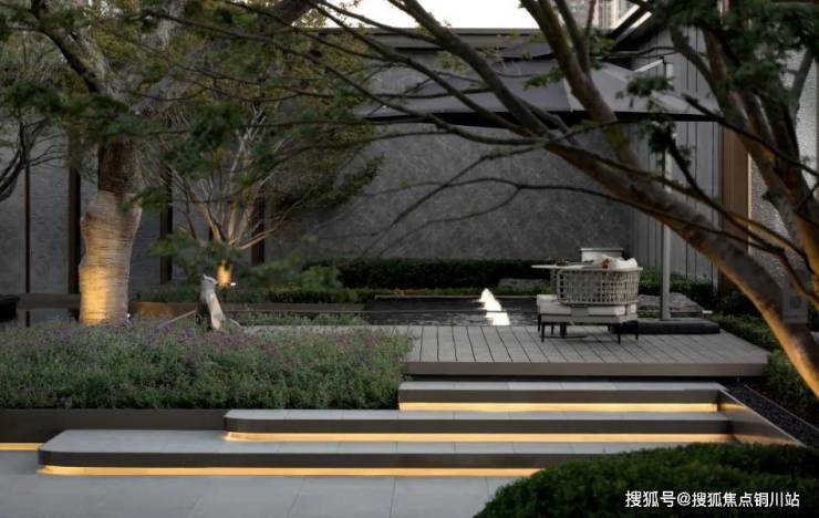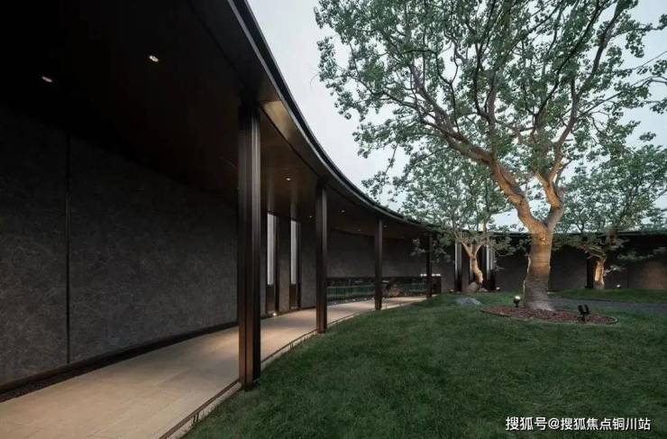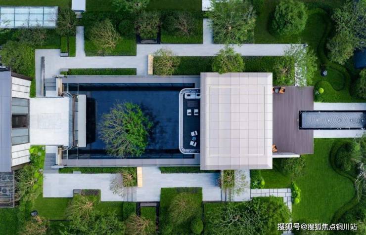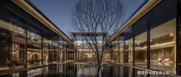 四水归堂水聚天心,环抱一方静池,建筑表皮在水的波光中交相辉映,造型独特的朴树孤植于其中,与山石流水共同绘制一幅静谧,闲适惬意。