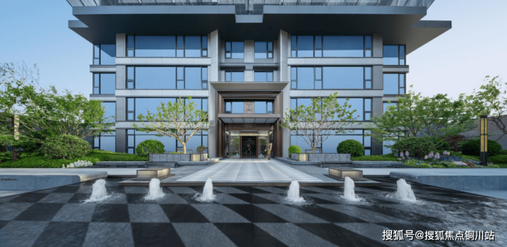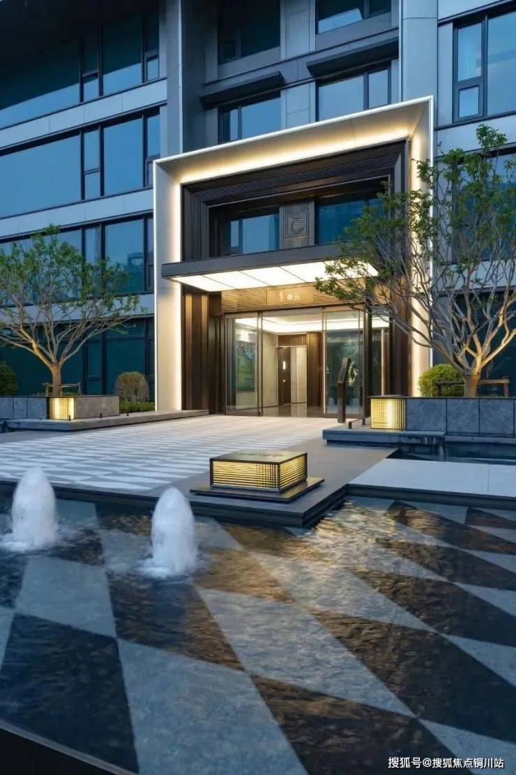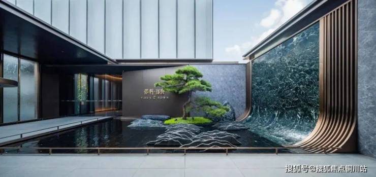 高端酒店赋能,典雅轻奢的酒店式落客区,融入弧形定制水景,结合价值约60万迎客黑松,礼遇生活的优雅。
