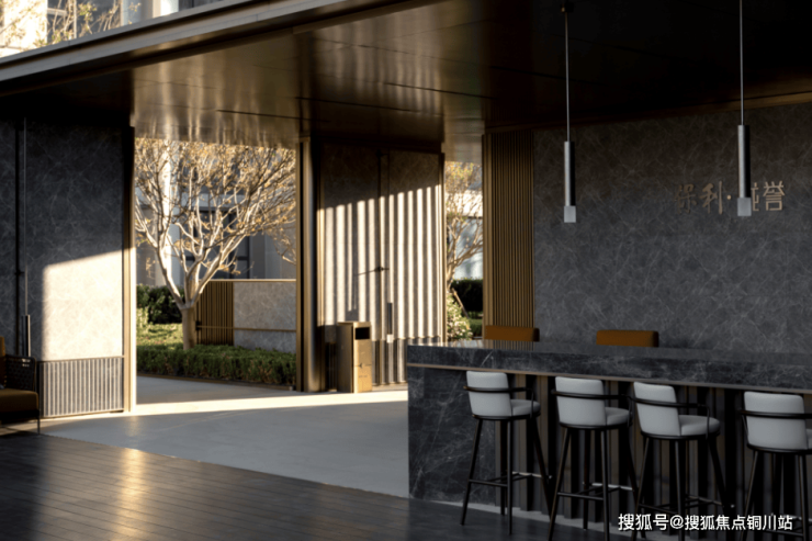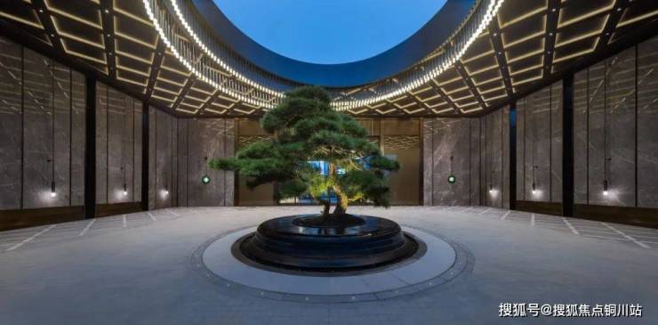 以酒店式美学蓝本盛装打造60米超长形象展示面门厅,典雅轻奢的酒店式落客区,融入定制弧形水景与迎客黑松,礼遇空间本质的高级感,为访客提供了酒店式门庭礼序的尊亨。