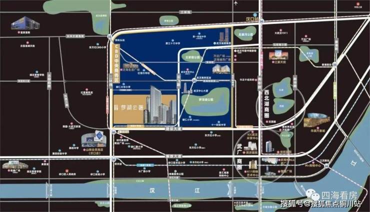 武汉城建梦湖云著位于建设大道与汉西路交汇处,楼市板块属于武汉CBD板块,行政划分属于硚口区,二环以内。
