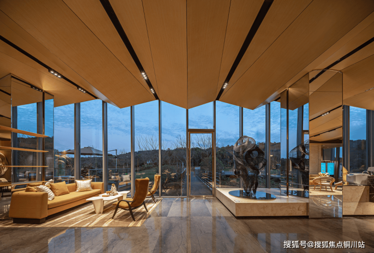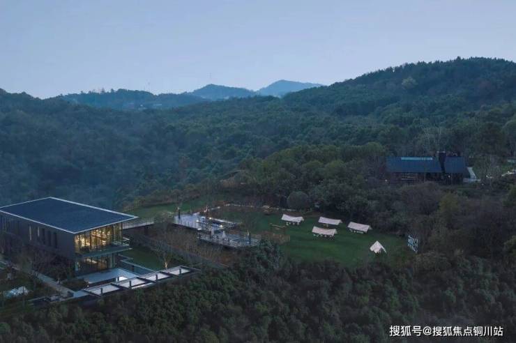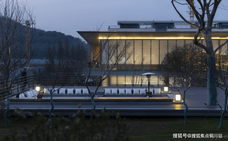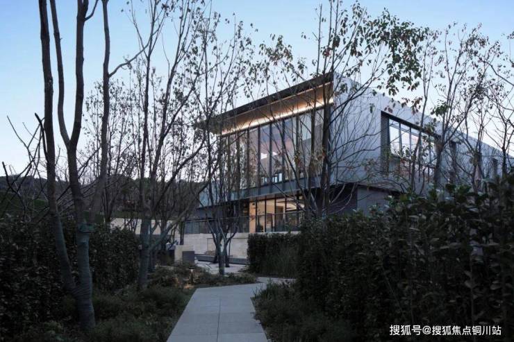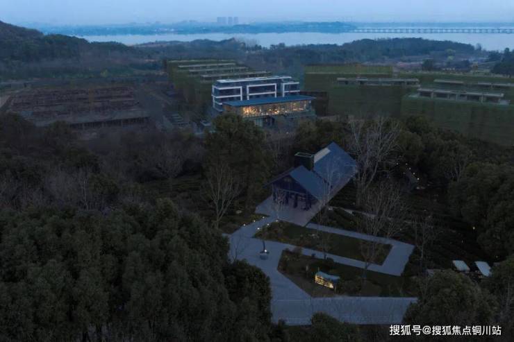 底层敦实的基座将建筑与山体融为一体,二层横向连续的玻璃幕墙面朝茶田徐徐展开,餐桌、吧台面对如此美景,假象一下:未来的社区,暮色四合,宵夜开席,岂不美哉?