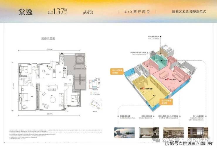 空间体验上,约9.2米的“跑道式”宽境阳台,近64平的LDK一体化厅堂,创造出奢阔的动区空间;约25平的行政级主卧套房,即使放2.2米的大床空间都绰绰有余;