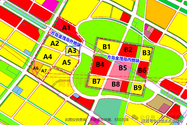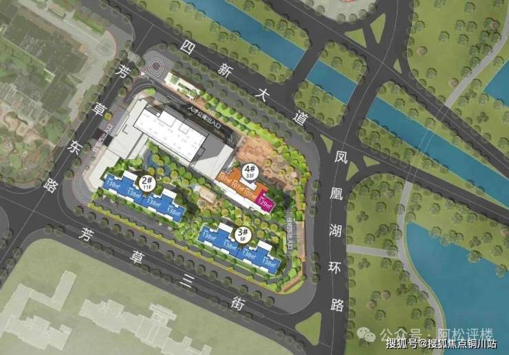 从平面图看,方岛金茂观棠4号楼高层位于项目东北角,南面是小区园林及6层洋房,北向是城市道路、览秀城(在建)等。