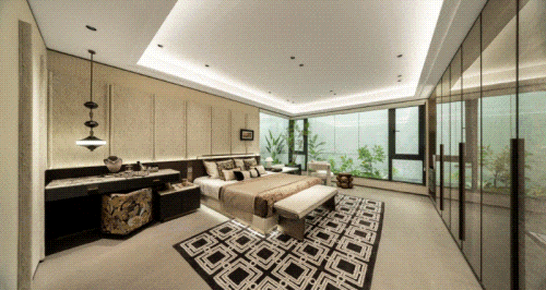 项目规划打造柏悦系现代美学立面,约90%的南向超大窗墙比+约270°转角落地窗,不仅颜值更上一层楼,还让业主与阳光、风景更直接地对话。
