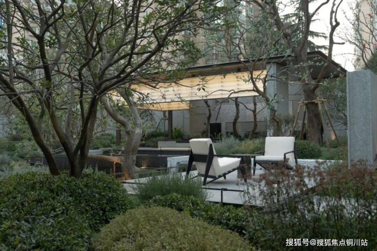会客厅后,则藏有一处精巧花境,数株高大乔木将其温柔环抱,收拢为一隅静谧的森然画境。于此,目光所及是草木生长的盎然秩序,耳畔所闻是风过林梢的细微清。