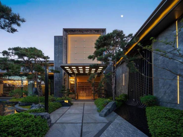 重奢府门师法苏州园林,约88米超长界面勾勒出大宅府邸的尊崇感。酒店式环岛落客区、奢石与古松的艺术搭配,共同营造出繁华与静谧的归家仪式。