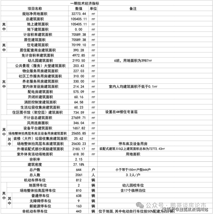 华润光谷润璟项目一期规划净用地面积32773.44㎡,总建筑面积105405.11㎡。计容建筑面积70589.38㎡,住宅建筑面积70199.10㎡,居住配套商业建筑面积390.28㎡。免计容建筑面积4972.85㎡,幼儿园建筑面积2193.50㎡。不计容总建筑面积27659.71㎡,容积率2.15,建筑密度27.18%,总户数644户,总人数2061人。机动车停车位812个(含新能源车位163个,非机动车停车位443个。