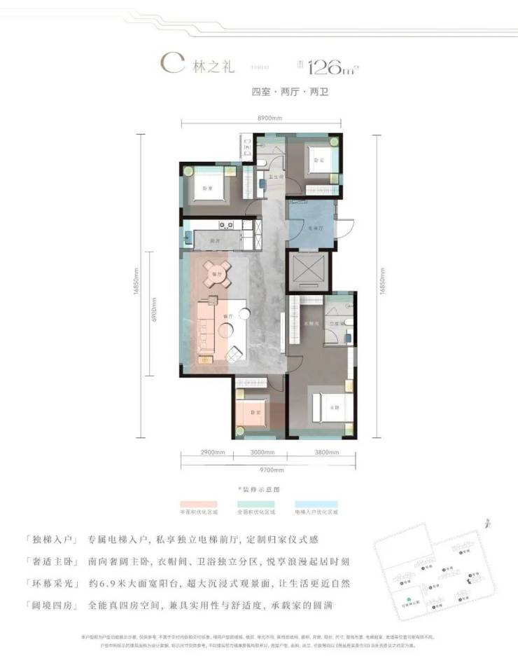 通过极限赠送+优化承重柱等操作实现“一骑绝尘”的得房率,即便不算电梯前室,全系户型综合得房率仍超97%,远超区域平均水平,让购房者“花同样钱,享更大实用空间”。