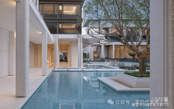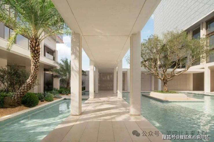 项目以地中海风情打造实景,以“温暖极简主义”为底色,蓝白配色居多,让项目呈现出了更为年轻、焕然一新的清新气质,让人眼前一亮。地中海风格在板块内辨识度极高,蓝宝石铺底的中心水院、老桩油橄榄、莱姆石,为社区增添清新与灵动;约3米宽风雨连廊,实现“无风雨归家”,一步一景。