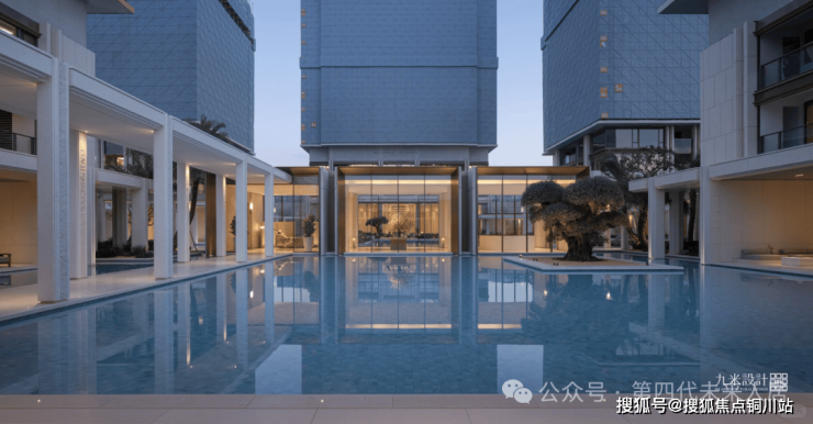 作为板块内首个四面铝板外立面项目,高层外立面选用仿石铝板搭配茶金色Low-E玻璃,整体形象简洁高级,历久弥新。