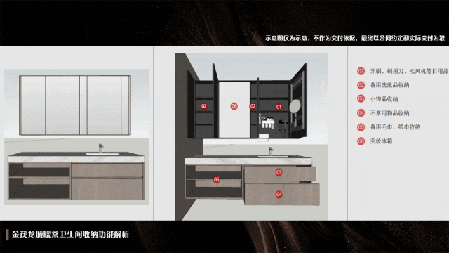 比如卫生间,项目创新「超级浴室柜体系」,镜柜功能高度集成:除雾美妆灯、多功能收纳架一应俱全。并在餐厨空间,系统化扩容家政收纳空间。以智慧设计,同时实现收纳力与美观度的双重飞跃。