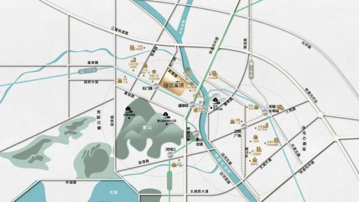 诗语溪境,正落子于惠山北麓与运河交汇的黄金三角地带,以“倚山傍水”的绝版占位,成为主城人居焕新的点睛之笔。