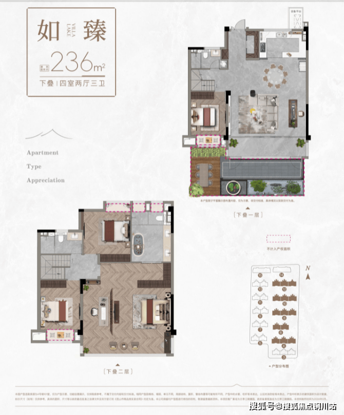 静美墅居(叠墅):建筑面积约165-236平方米。