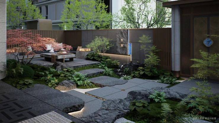 栋式天地叠院立面:现代简雅立面勾勒太湖水韵纹脉线条。