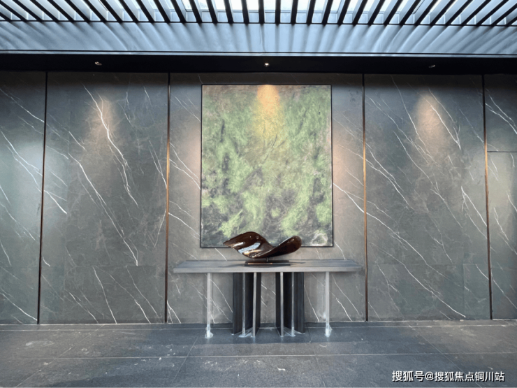 精装修的地上地下双入户大堂,都已经实景呈现。地上大堂门头采用铝板材质,地面是石材+岩板背景进行铺贴,强烈的高级灰调的质感。