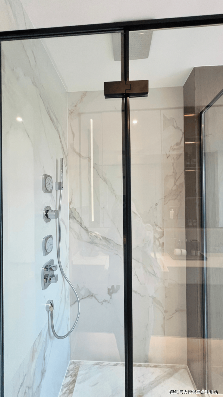 主卧卫生间非常奢侈,全是国际一线品牌,而且淋浴区配置了汉斯格雅恒温花洒,全部采用暗装墙出的五金件配置,全南京少见。