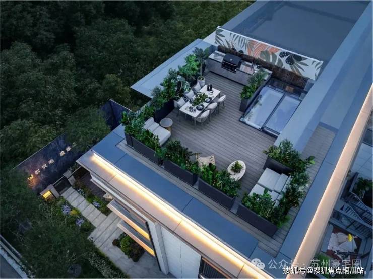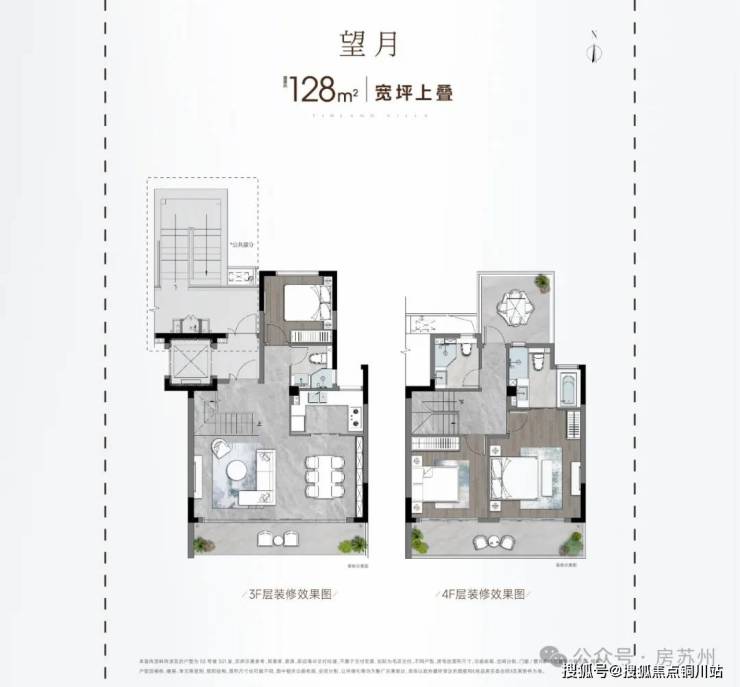 上叠建面约128㎡,3房3卫,带星空露台与楼顶空中花园,将天空与风景无缝接入日常生活。
