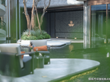 1号楼入户门楣两侧做了对景设计,也有水景与名贵树种等。