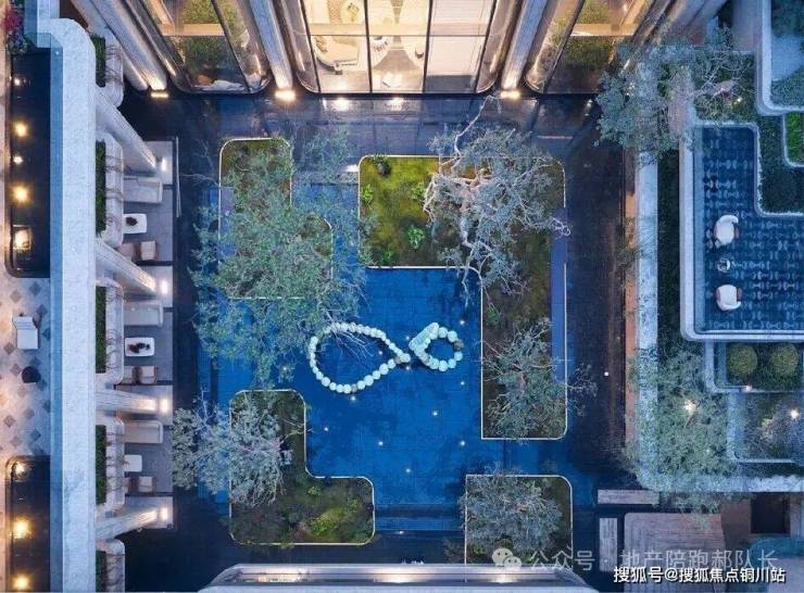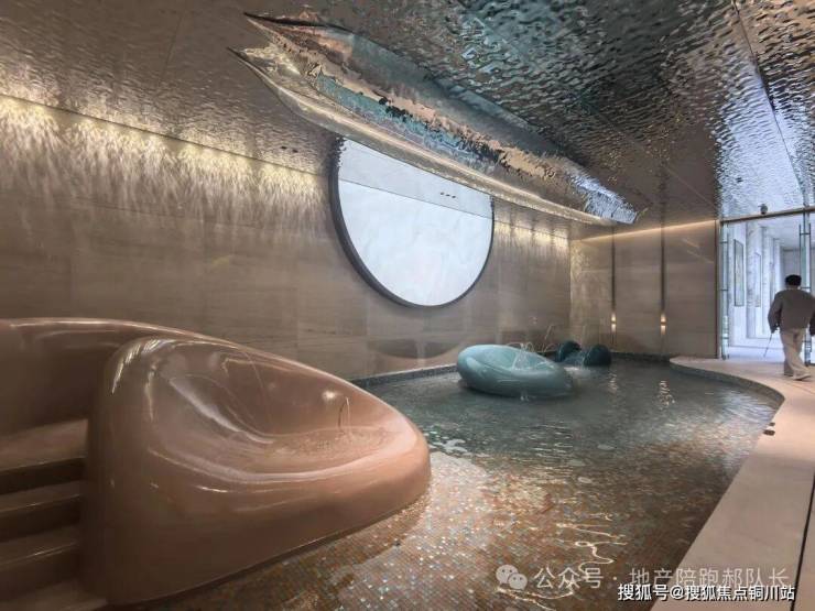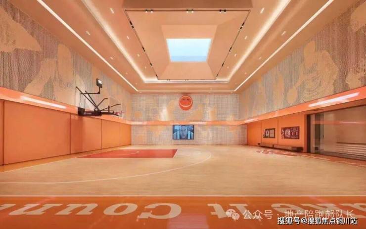 地下会馆以约 460㎡下沉水景庭院为核心,串联起天光篮球馆、恒温泳池、健身房、会客室等多元空间,一站式满足业主运动健身、商务洽谈、邻里交流等需求。其中,天光篮球馆对标专业赛事标准,净高约 7 米,自然采光搭配动感设计,成为运动爱好者的打卡地
