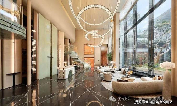 更打造出约 11.5 米朗阔挑高的立体门头,以恢弘的尺度铺就归家序幕。