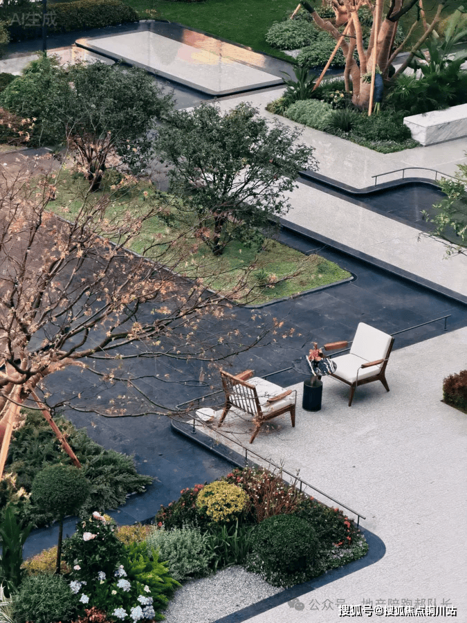 纵轴打造南北贯通的观景通廊,一路延伸至南端的 “观景城市阳台”,将金沙湖的湖景风光引入社区,实现社区景观与城市湖景的无缝衔接,让业主在家门口就能俯瞰湖光盛景,尽享临湖居住的诗意。