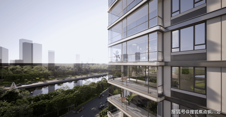 外立面运用弧角收边,封闭式大面宽阳台,外加阳台玻璃边框趋零的设计,远看更显通透轻盈!