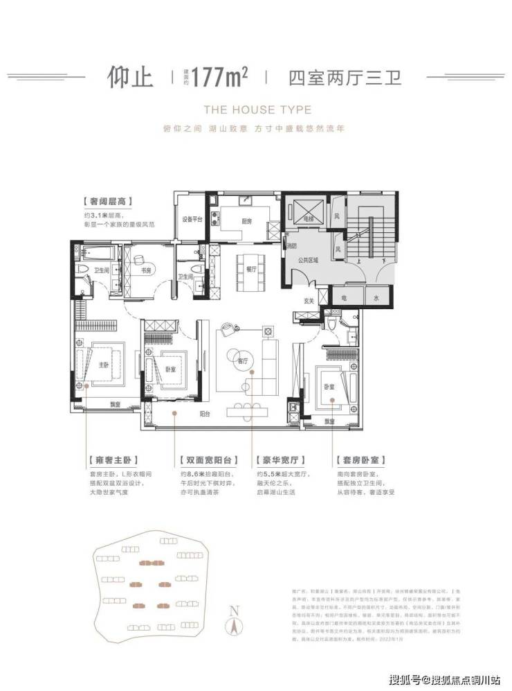 建面约177㎡四房两厅三卫进阶户型,则拥有更具“包容性”的空间尺度。