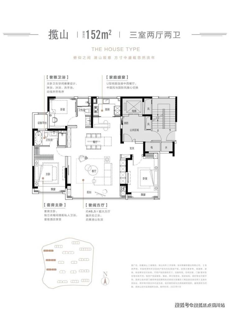 比如建面约152㎡三室两厅两卫户型,带有独立电梯厅,既提升了私密性,还能延伸收纳空间。