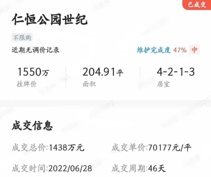 2020年,仁恒公园世纪炸市首开,上演抢房大战,当时15层住宅均价28850元/㎡,6层住宅均价35040元/㎡,4层住宅均价更是达到45340元/㎡!
