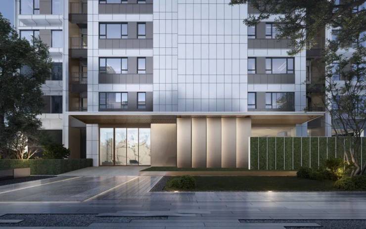 紫琅世纪洋房及叠墅区立面选用铝板,小高层选用保温一体板,搭配深灰+浅香槟金色调,线条大气简约,做到去风格化,品质感、高级感,尊贵感肉眼可见。